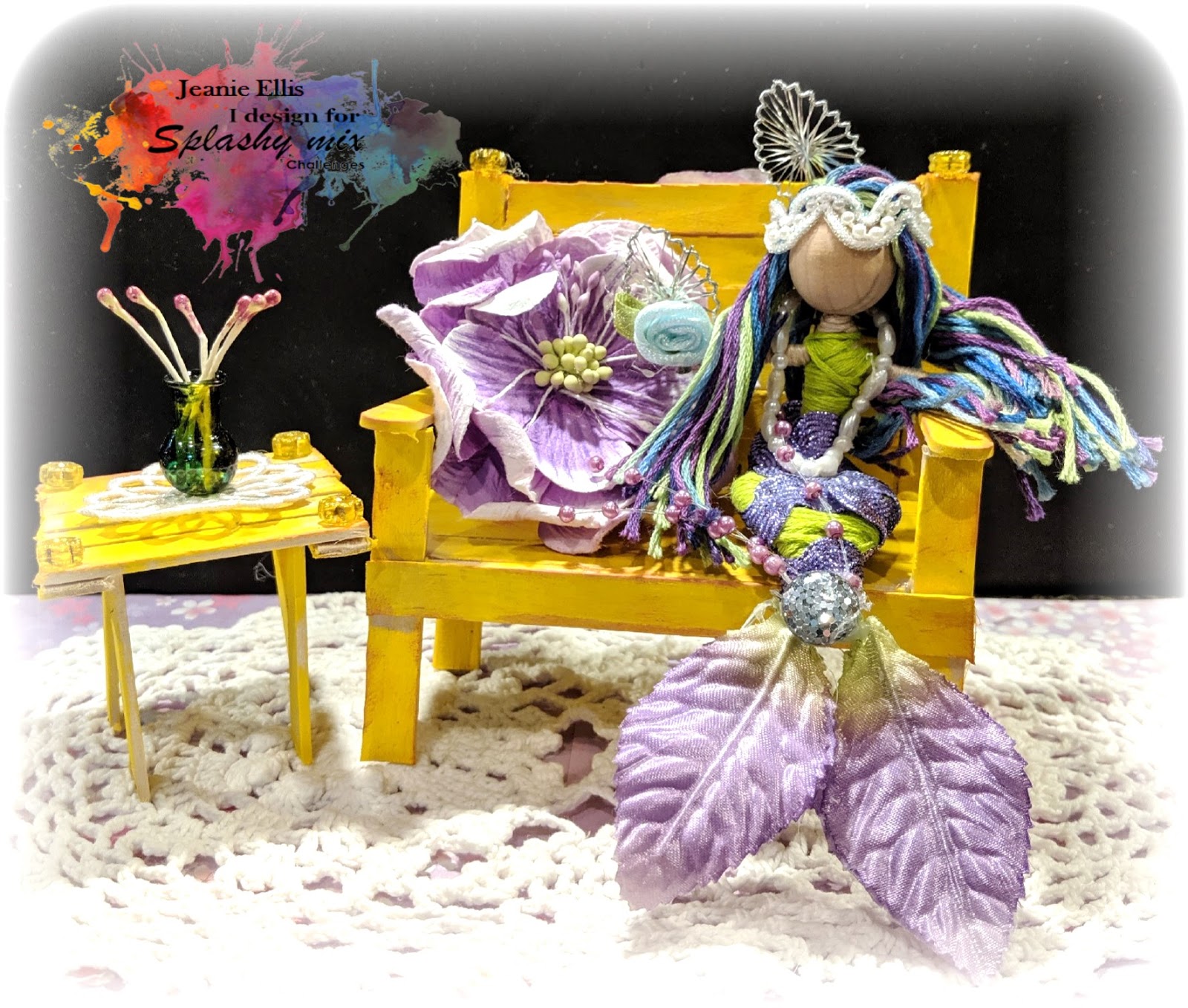 Now on to my project. I decided to go a little outside the box for me. When I saw the colors and the 1st scenery of the moodboard, I thought how lovely it would be to sit outside and look at that. So I thought I'd create a little outdoor sitting bench and little table for my little Indian Mermaid I had made a few years ago. The colors were perfect for this, and I've been trying to figure out how to display her. Voila! I now had me the perfect place for her.